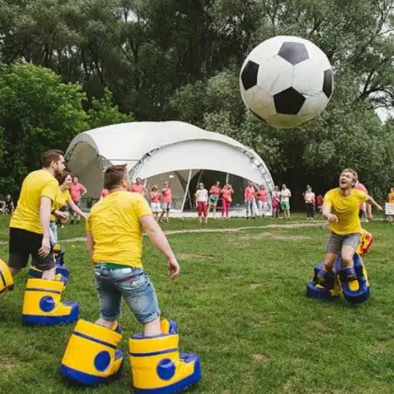 Ce jeu totalement dingue transforme un simple match de foot en une épreuve d’équilibre et de coordination hors du commun. Équipés d’énormes chaussures qui rendent chaque mouvement imprévisible, les joueurs doivent tenter de marquer des buts… sans tomber !
